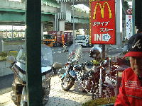 | 小牧のマクドナルドでモーニングタイム。窓越しに見えるバイク達が良い感じです。 |