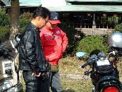 | ドライブインで談笑する二人のゼファーライダー。やはり愛車ゼファーの話しが中心でしょうね。 |