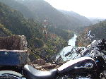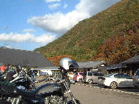 | 岩屋ダムに到着 金山湖沿いの道はバイクで走ると気持ちが良いですよ。湖には山々の稜線と紅葉が映え、響くバイクの排気音に心が躍ります。 馬瀬大橋の付近の山々と湖が織りなす地形の面白さは目を奪われました。 |