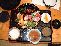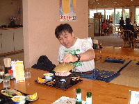 | 明宝村にある湯星館はスキー場も近く、その帰りにも便利です。湯は温めですがゆっくりと入れば後でぬくぬくですに。 昼食を取るのはBMWR1150RTに乗るkameさん、ハムステーキ定食でしたよね。私はお勧めの「ゆうゆう定食」を頂きました。美味しいですよ。 |