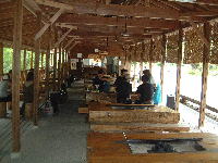私たちはそこそこ釣れたので、人数の多いつもさん一家を残して先に釣り終了。後は釣った魚を捌いてもらって囲炉裏で焼いて食うべし!これが美味いんだぁー、多分家で焼いて食ってもさほど美味くないと思うこう言うところで炭火で焼いて食うから美味いだよね、つもさん一家も釣り終了でいよいよバーベキューの始まりです。