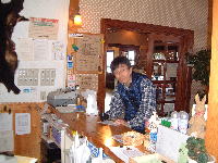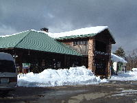 | 上は管理棟です。駐車場は除雪してありますので安心です。ここまではね、受付を済ませてさぁー行きましょう。管理棟には品物も豊富でしたね。 |