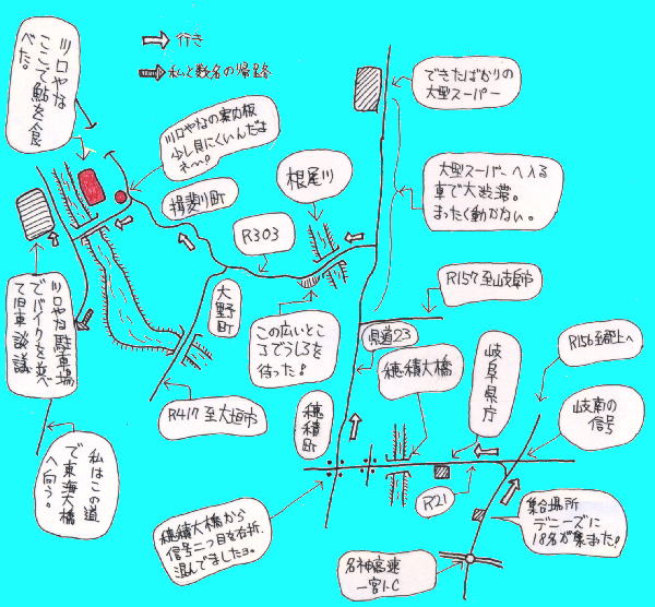 岐南町の信号を左折してR21へ、穂積町からは県道23 で北上。 途中では大渋滞で動かずでした。何でも根尾村に大き なスーパーが本日開店だとか。 どんな所にでもできますね。 |