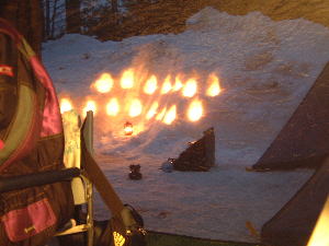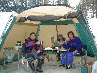 | 後記 今回も熊に食われる事も無く凍死する事も無く無事にすみました。冬のキャンプで一番の楽しみは誰にも邪魔されない時間が持てる事でしょう。ただ夜は曇って星空や月明が雪原を照らす光景が見られなかったのが残念でした。 それに数日前の雨で雪が固まっていたのでフワフワッとしてキラキラッとする綺麗・・・てのがなかったのがまたまた残念なキャンプでした。 HPをごらんになられた皆さんも一度雪の中のキャンプを楽しんで下さい。文句なく良いですよ。 HP担当 団栗村の住職さん |