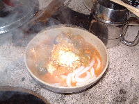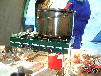 | EPIのツーバーナー、久し振りの活躍です。鍋を温めてます。 |