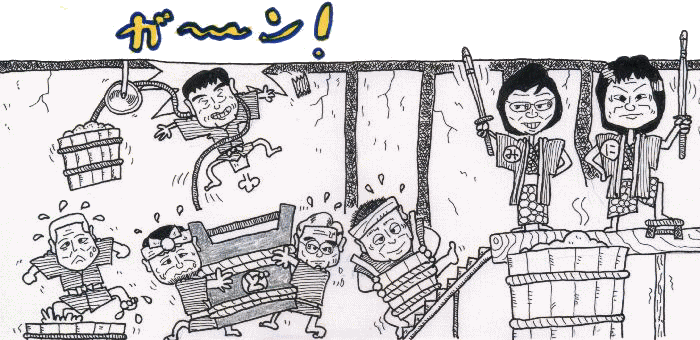 | 昔むかし、ある酒の文化館に男達をこき使う女性陣がおったそうな。そこへ迷い込んだ「どんぐりの男性陣」は蔵に閉じこめられて一生酒造りをやらされたんだと。怖いこわいお話じゃったよ。 んな事はありませんが、またまた雨模様でツーリングクラブからドライブクラブになっちゃいました。 |