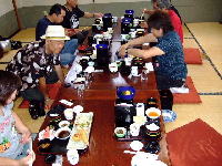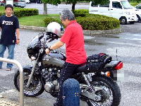 | 7月11日 朝から激しく降る雨の音で目覚め外を見れば「アレ雨じゃん!」バイクあかんで車じゃんって事でのぉんびり(集合場所がニノんチから5分掛からない場所のため)度してましたら携帯に・・・・着信が 「コ・・コレ?は・・・・あのお方!」って出てみれば「着いたよ(^^)v」って九時でした(^^;流石集合一番乗りの伝説の御人スクーター親父さんでした〜(^ー^) 慌てて仕度して合流したらツモちゃまもスクーター親父さんと同じ時間にご到着だったようです。初めての集合場所で時間的にどれ位掛かるか判らないから早めにきてくださったみたいどぇす。それからレディースの先輩みっちゃんも遠い処を来て下さって次々に到着する車待っているとw(( ̄ ̄0 ̄ ̄))wワオッ!! 一台のバイクがどんより空の下をさっそうと来るじゃア〜リマセンかぁゼファー信さんの御姿が・・・「凄い!」の一言「バイク魂!」有るなぁって一時間近く暑い日あたりの下でおしゃべりしてましたね日陰へ誘っても動かない程話し盛り上がってたようです。 そこから3分の11時予約済みの和食処深海まで各々の車&バイクで移動(車だとちょい隊列移動が難しい事が今回わかりました) |