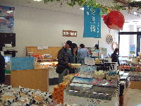 茶臼山山頂の土産物店で家族へのお土産を選びました。ちなみに私は「ピリカラ卵」に「五平餅」を購入です。 |