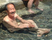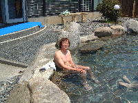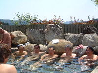 ちと危ない場面もありますがまぁぁぁ大丈夫でしょ。青空と新緑と露天風呂なんて贅沢な一時です。