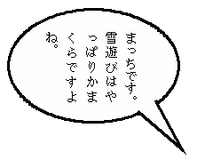 かまくら作りで一番辛いのは中の穴堀です。体力的な面と腰痛で住職さんとすろう人さんは別の仕事に従事。 住職さんはソリで穴から出た雪運び、すろう人さんは・・・・・ |