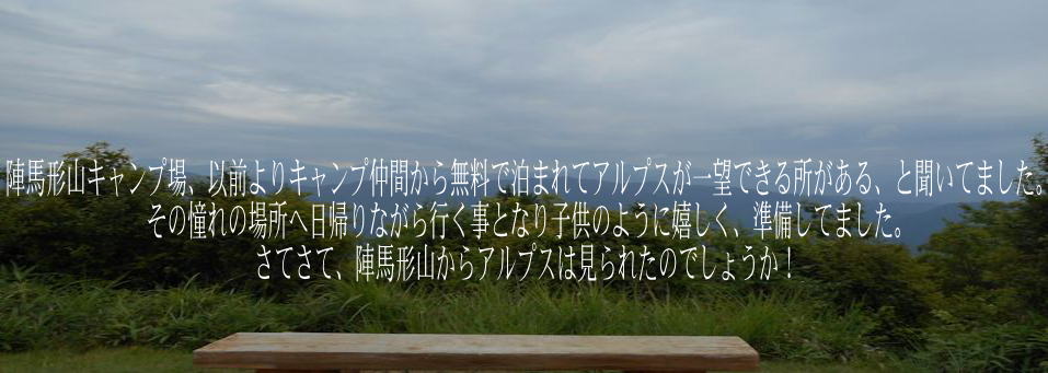| 後記 今、私達東海中部のライダーの間では話題の陣馬形山キャンプ場。今回は霞んで見えなかったアルプス、次回はキャンプで泊まって見たいものです。おおぉ~ぃ、誰か行こうよ! |