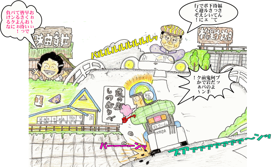 道の駅から歩く福さんが早いかポルシェか・・・どっちも頑張れぇぇ~!