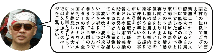 | 後記 いやいや、馴れたと思ったのにまだまだ未熟です。こんな大きなバイク、乗りこなせるか不安じゃん! でも皆さんGL1800やハーレーに乗ってますもんね、頑張らないとあかんです。仲間と久し振りに合い走ると本当に気持ちが和らぎ楽しくなりました。コロナが終息したらもっと楽しみたいですよね。 |