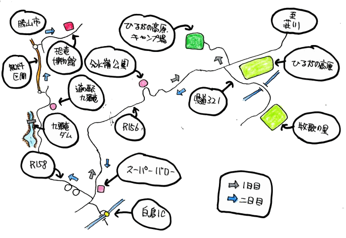 | 走行距離 | 一日目 128.5km 二日目 0km 三日目 183.5km 合計 312km |