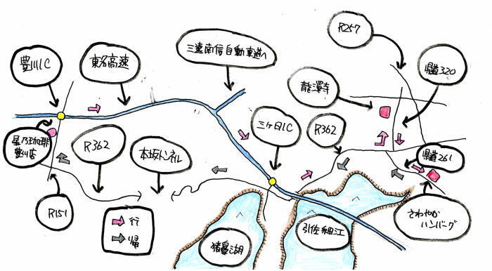 | お腹も満腹になり帰路へと向かいます。豊川ICから上がる前に最終コーヒータイムの予定です。 R362に入り三ヶ日の町中を抜けて本坂トンネルを潜りました。昔は有料でしたよね。この道は通称姫街道と呼ばれますから大名のお姫様達が行列を組んで通ったのでしょうね。右折してR151で豊川ICへと向かい予定の星乃珈琲豊川店でコーヒーとデザートで談笑タイム。 解散後は豊田jctはから伊勢湾岸道路の刈谷PAで給油し、午後3時40分に自宅着としました。雨で流れながれての今年発定例は分い゛終了。 本日の走行 207.6km |