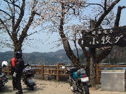 あの有名な大牧温泉への渡船場の近くにある小牧ダムで休憩をする。桜が五分咲きかな・・・