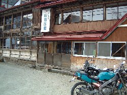 山田旅館の玄関にバイクを停めさせて頂きました。20数年ぶりに来た旅館は少し手直しされているものの木造三階建ての雰囲気はそのままでしたね。 |