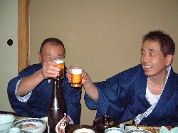 午後5時30分から宴会でした。湯治場ですので宴の時間も短いものでしたが、道中や桜の見事さが話題の中心でした。