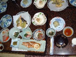 宿の宴会料理です。山深い土地と言っても日本海が近いので海の幸はとても新鮮でしたよ。